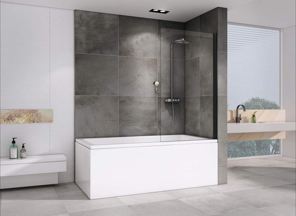 Душевая шторка для ванн Abber Immer Offen 100x140 стекло прозрачное, профиль черный (AG71100B)