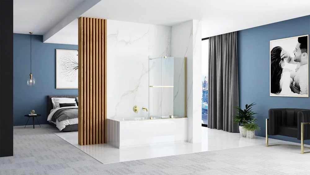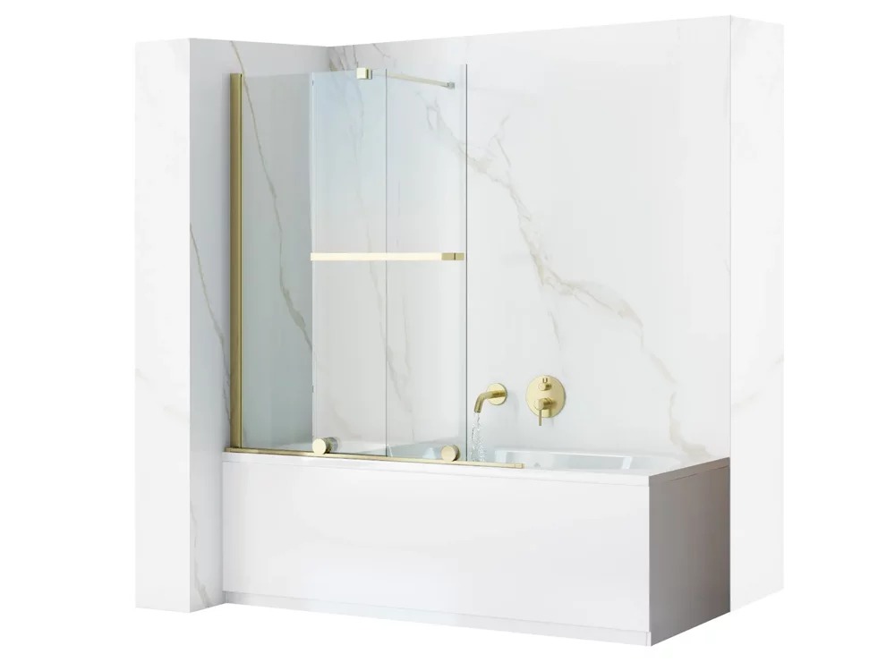 Душевая шторка для ванн Rea Fabian 100x140 стекло прозрачное, профиль золото (REA-К6526)
