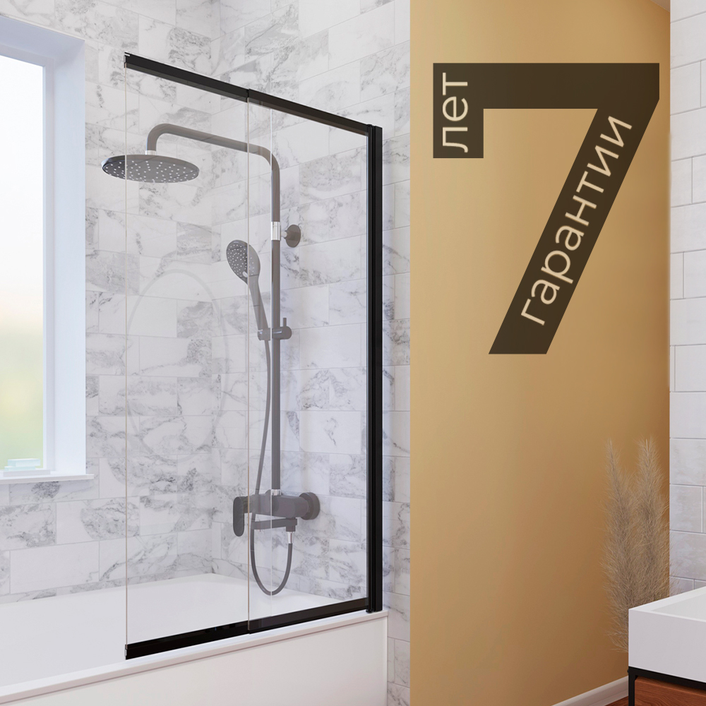 Душевая шторка для ванн WasserKRAFT Dill 100х140 стекло прозрачное, профиль черный (61S02-100)