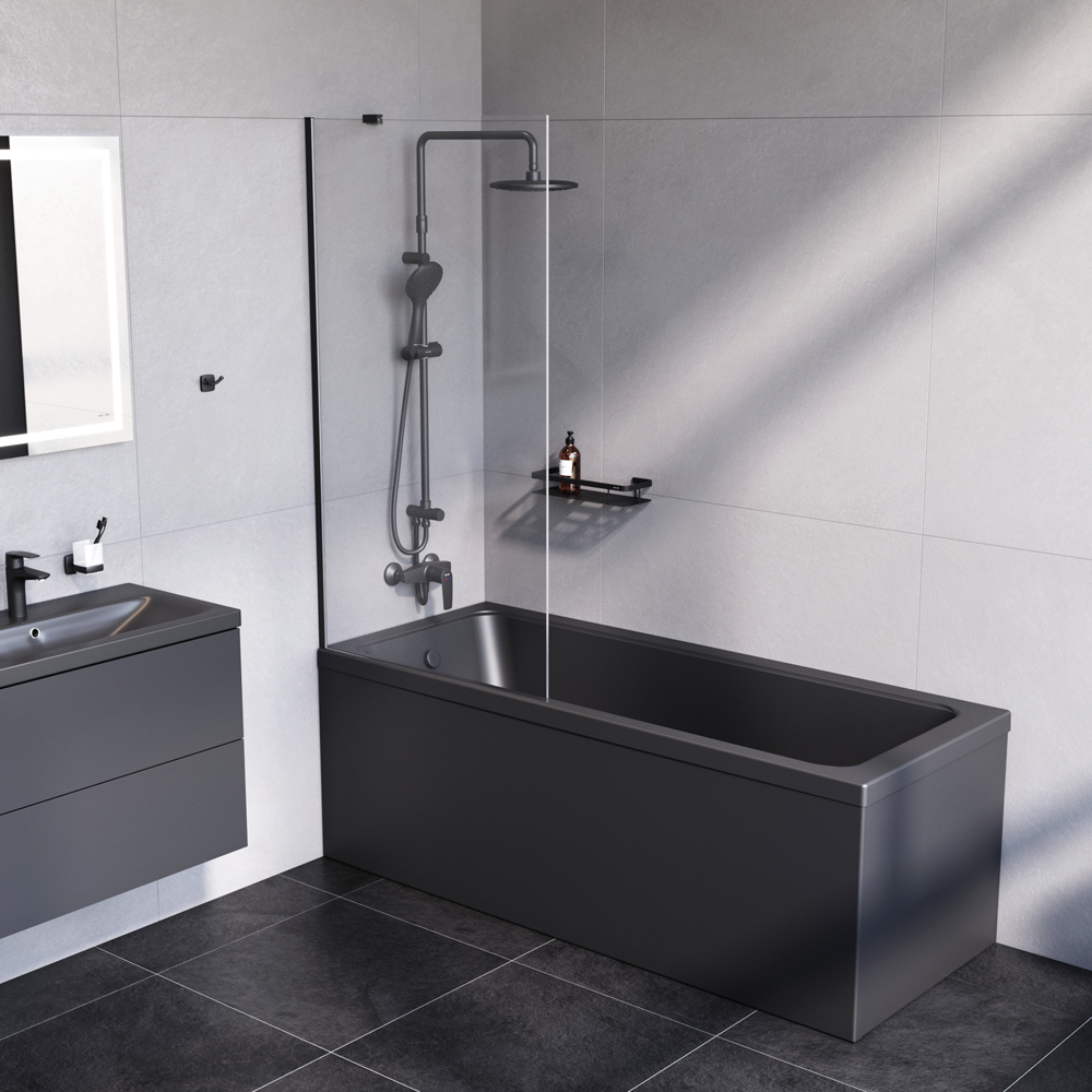 Душевая шторка для ванны AM.PM Gem 80х140 черный, стекло прозрачное (W90BS-080-140BT)