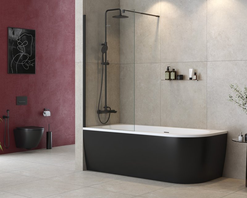 Душевая шторка для ванны Cezares Liberta 80x155 стекло прозрачное, профиль черный (LIBERTA-V-1-80/155-C-NERO)
