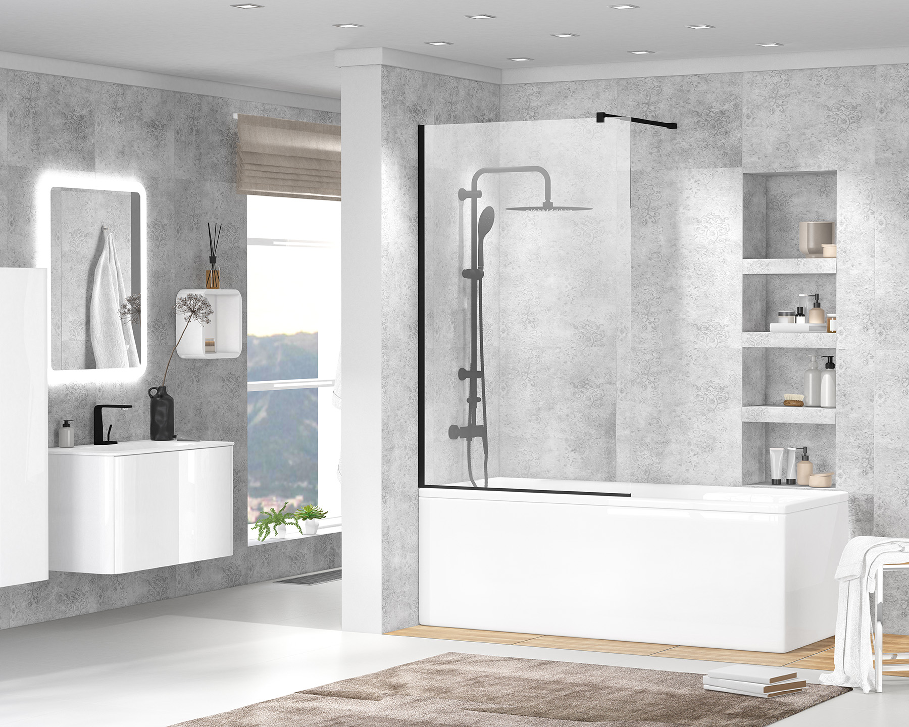 Душевая шторка для ванны Cezares Liberta 90x155 стекло прозрачное, профиль черный (LIBERTA-V-1-90/155-C-NERO)