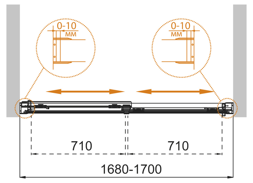 Душевая шторка для ванны Cezares Tandem-soft 170x145 стекло рифленое, профиль хром (TANDEM-SOFT-VF-2-170/145-P-Cr)