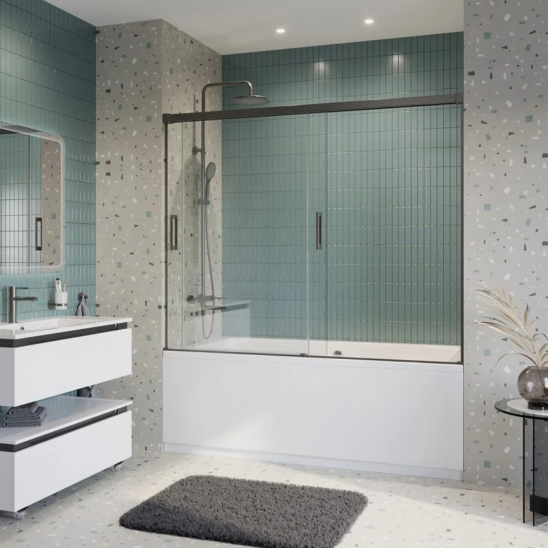 Душевая шторка для ванны Cezares Tandem-Soft 180x145 стекло прозрачное, профиль оружейная сталь (TANDEM-SOFT-VF-2-180/145-C-GM-IV)