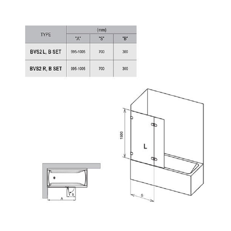 Душевая шторка для ванны Ravak BVS2 100x150 стекло прозрачное, профиль хром (7ULA0A0Z1)
