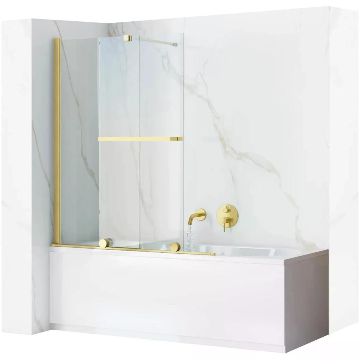 Душевая шторка для ванны Rea Fabian 100x140 gold mat стекло прозрачное, профиль матовое золото (REA-К6527)