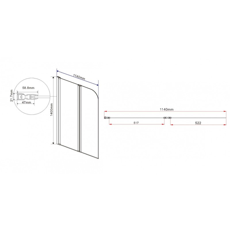 Душевая шторка для ванны Vincea VSB-12 1140х1400 стекло прозрачное, профиль хром (VSB-12114CL)
