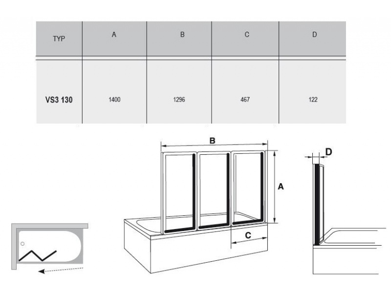 Душевая шторка на ванну Ravak Supernova VS3-130 130х140 полистирол rain, профиль белый (795V010041)
