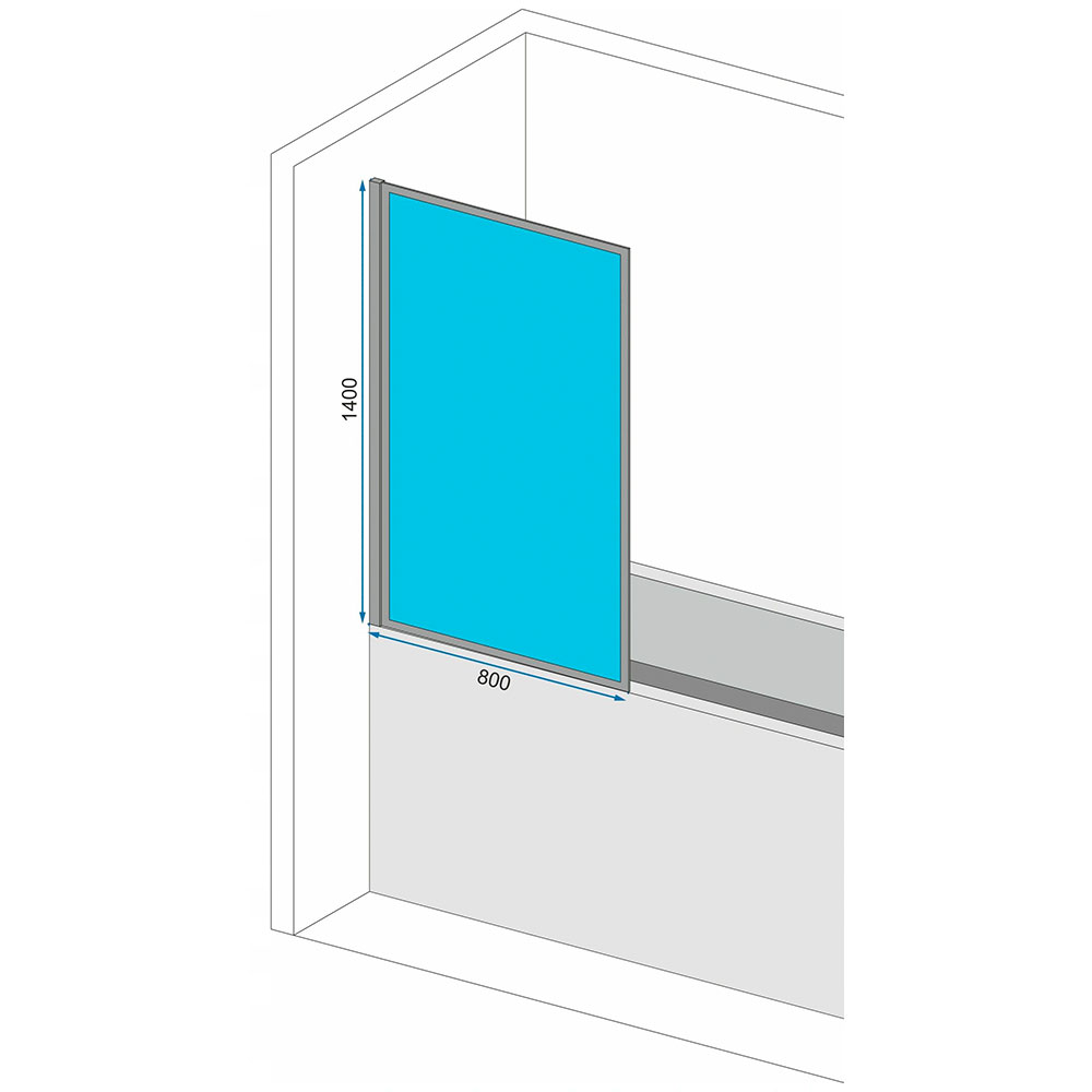 Неподвижная шторка на ванну 80х140 см, золотой профиль, прозрачное закаленное стекло толщиной 5 мм.