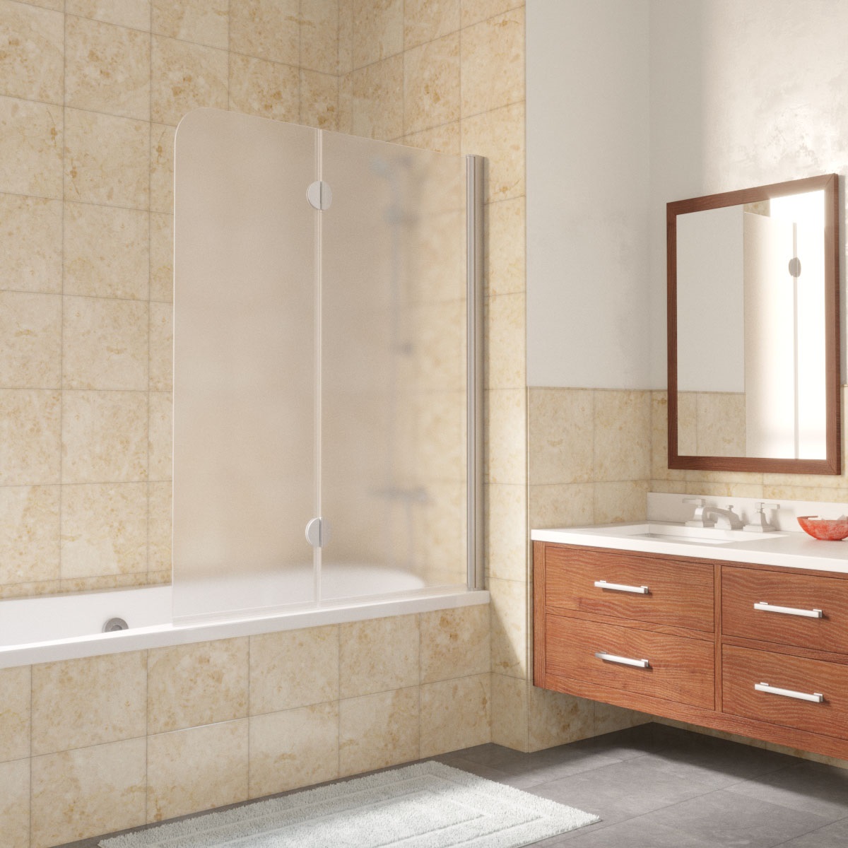 Ограждение на ванну двухстворчатое Vegas Glass (Вегас Глас) E2V 120 см. Складная душевая шторка на ванну.