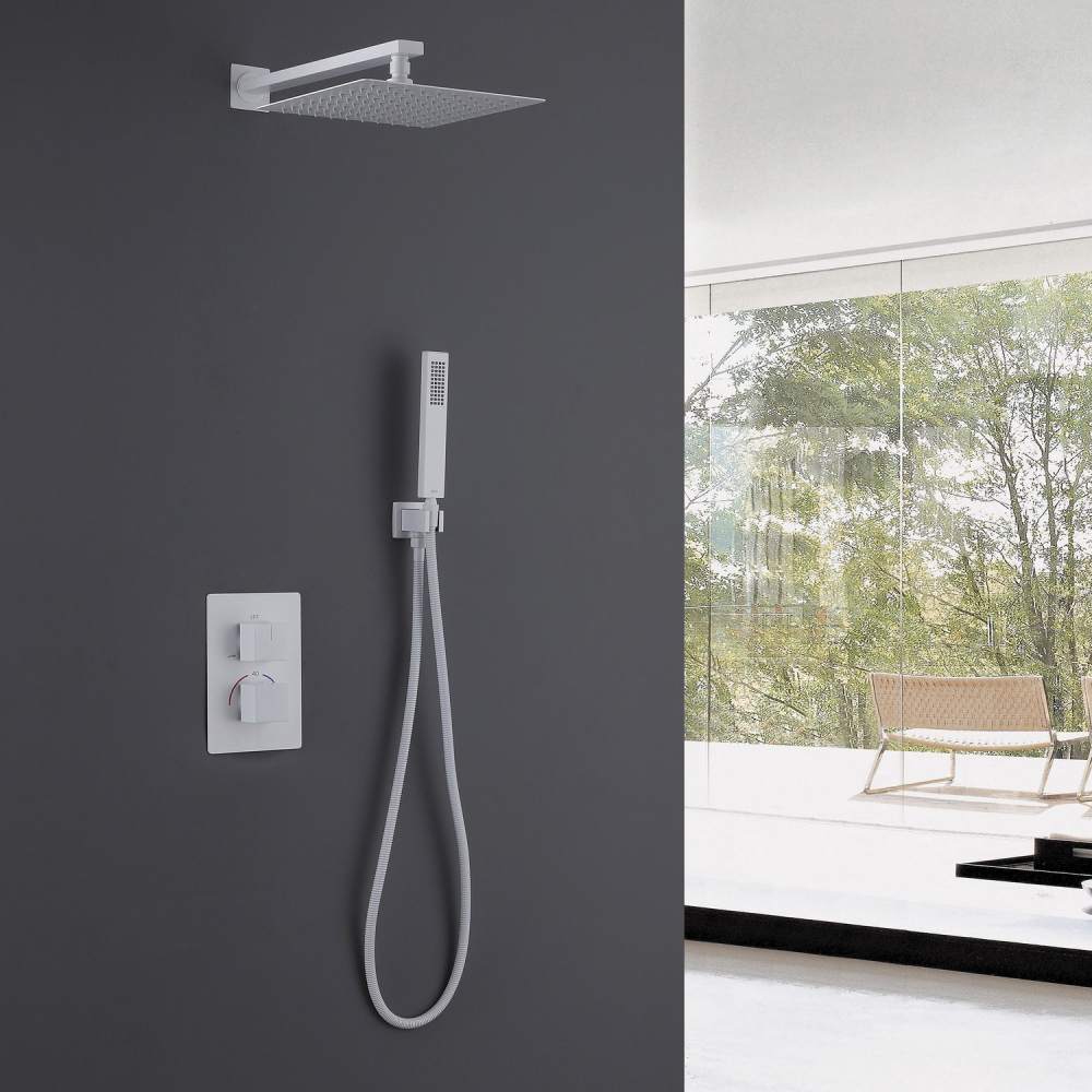 Состав поставки: смеситель внешняя и внутренняя часть, верхний душ, душевая лейка, держатели, душевой шланг