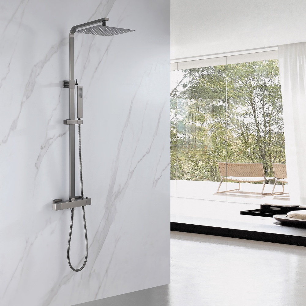 Состав поставки: смеситель, верхний душ, душевая лейка, держатели, душевой шланг, душевая штанга