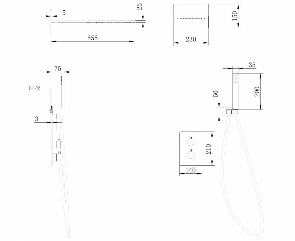 Душевая система Abber Insel белый (AF8052W)