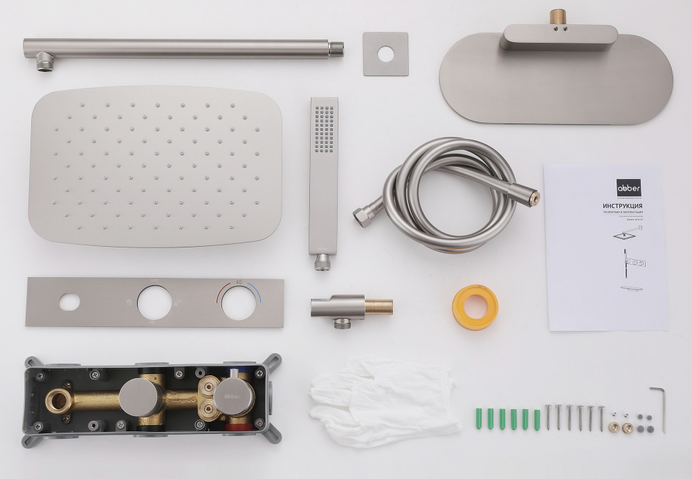 Душевая система Abber Rund скрытого монтажа с изливом термостат сатин (AF8750SP)