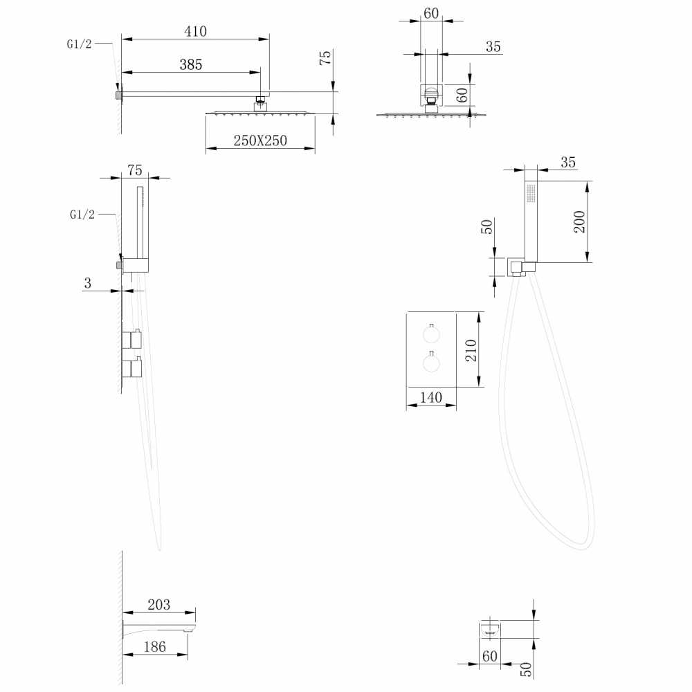 Душевая система Abber Weiss Insel хром (AF8050)
