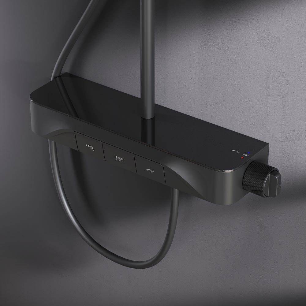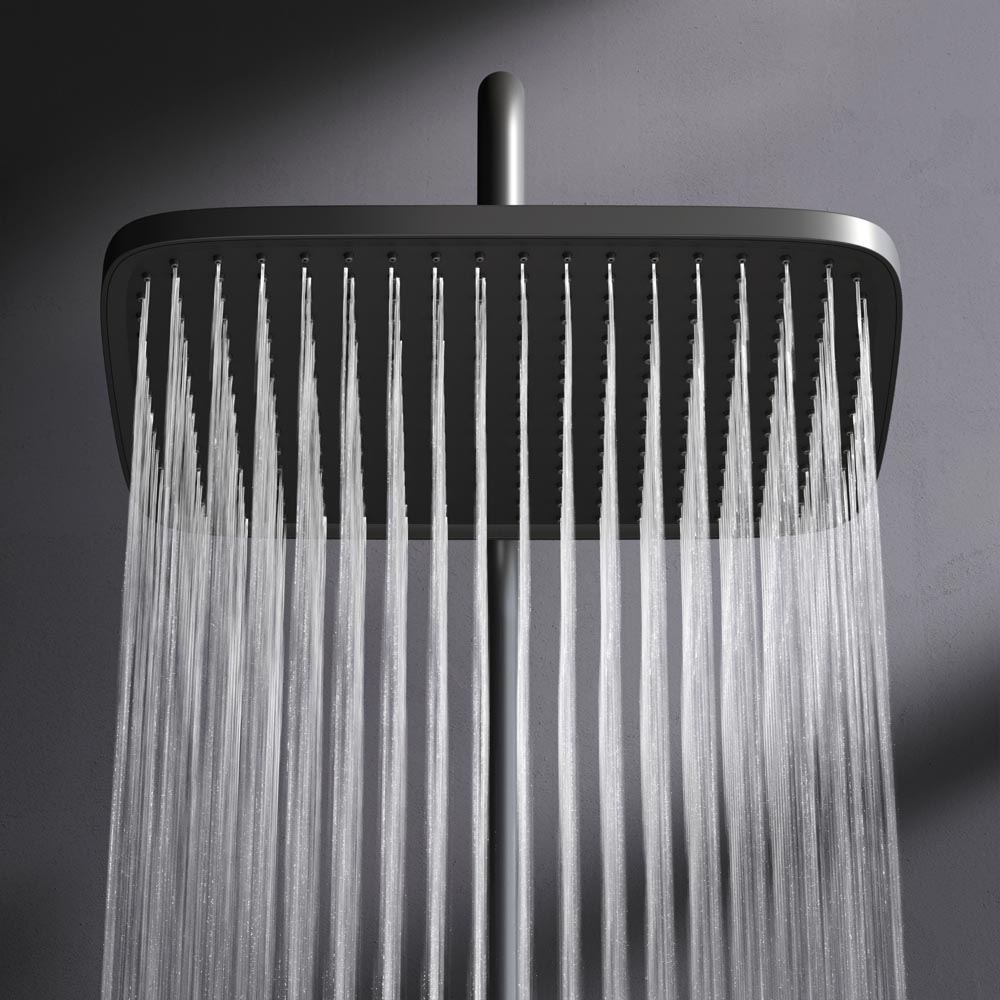 Интуитивно понятное управление: всего одна удобная ручка для настройки температуры и потока воды. Ручка дополнена инновационным антискользящим покрытием которое позволяет комфортно управлять душевой системой даже с мыльными руками. Переключение потоков воды осуществляется нажатием клавиши.