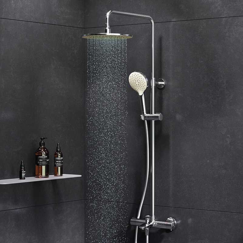 Душевая система AM.PM Like F0780564 с круглым верхним душем, с термостатическим смесителем с изливом.