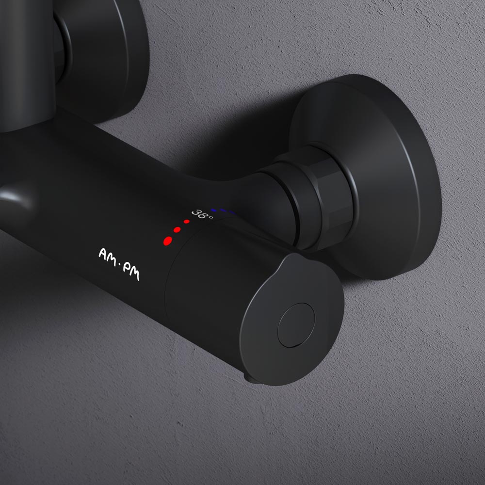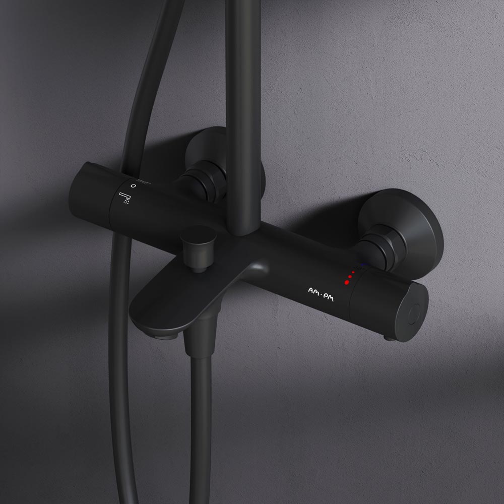 Душевая система AM.PM Like набор: смеситель д/ванны/душа с термостатом, верх.душ.d 220 мм, ручной душ, черный (F0780522)