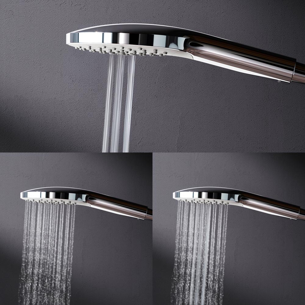 Премиальные размеры и продуманные детали: увеличенный диаметр душевых леек (верхний душ 254 мм и ручной душ 120 мм) позволит ощутить преимущества тропического душа тогда как увеличенная длина шланга 1750 мм обеспечит свободу движений во время принятия душа. Телескопическая поворотная штанга регулируется по высоте в диапазоне от 1030 до 1460 мм обеспечивая комфорт для людей любого роста а шаровой шарнир в держателе верхнего душа позволяет регулировать угол его наклона.