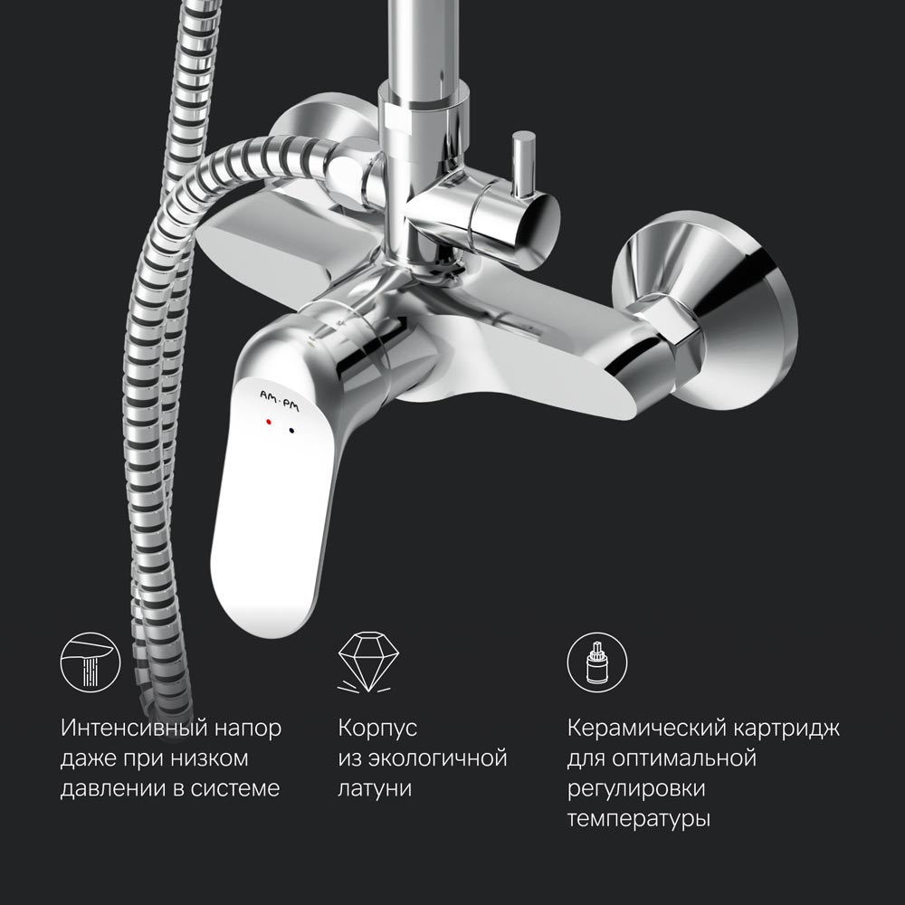 Душевая система AM.PM Sunny набор:см-ль д/ванны/душа,верхний душ d220 мм, ручной душ 110 мм, 1 функц, черный (F0785C922)