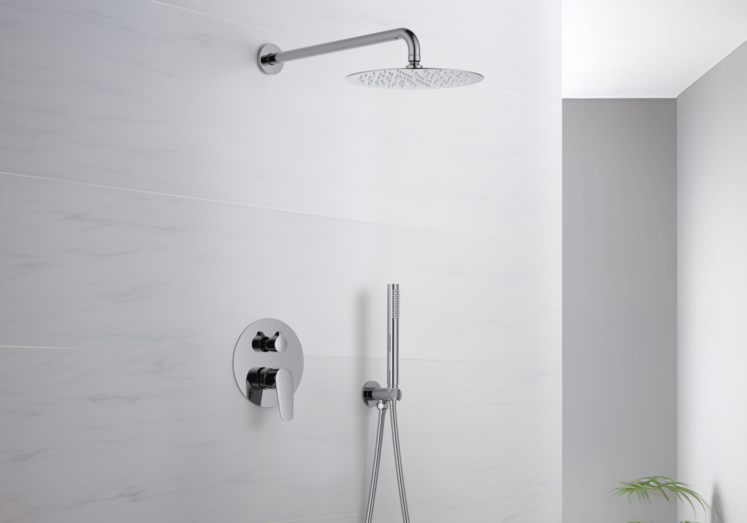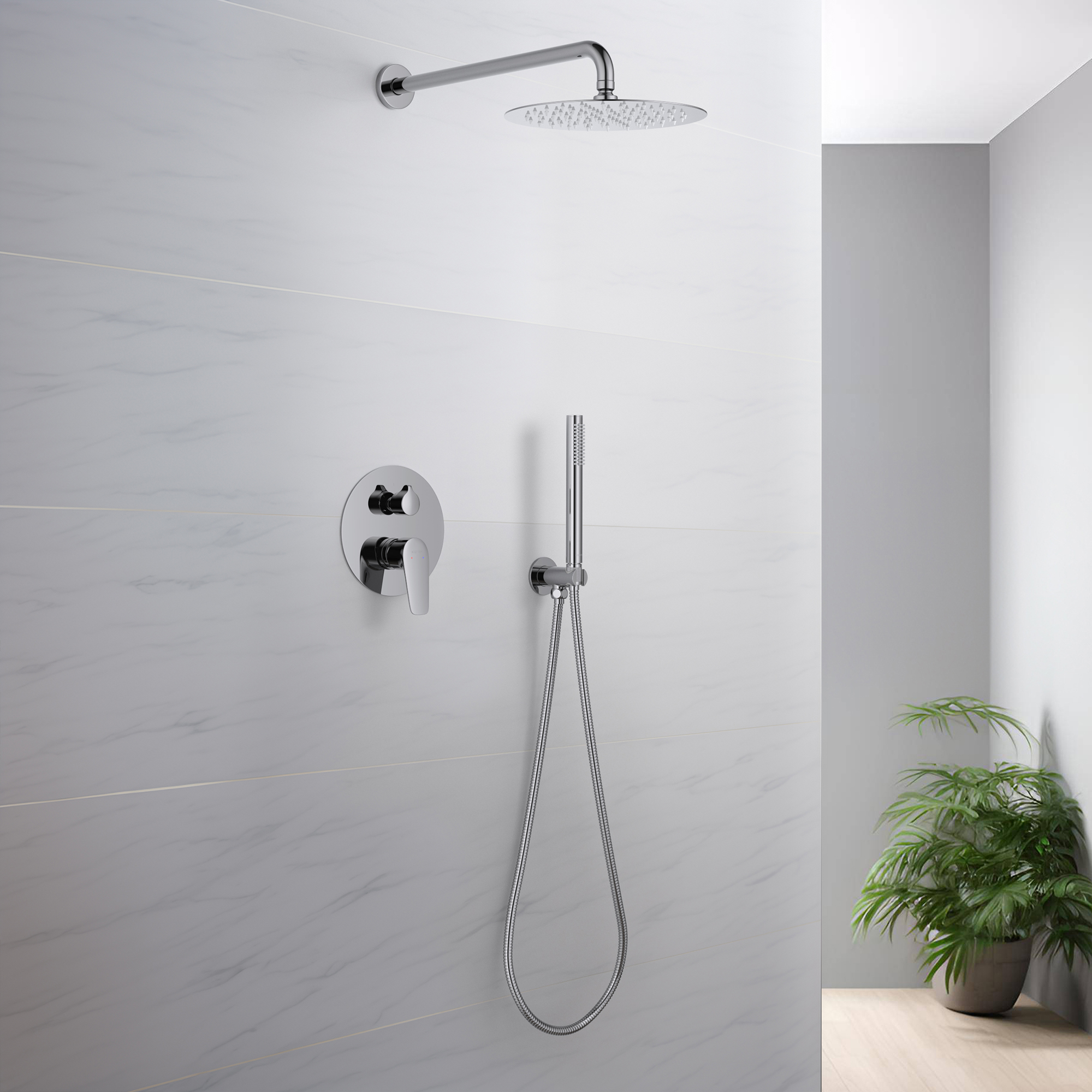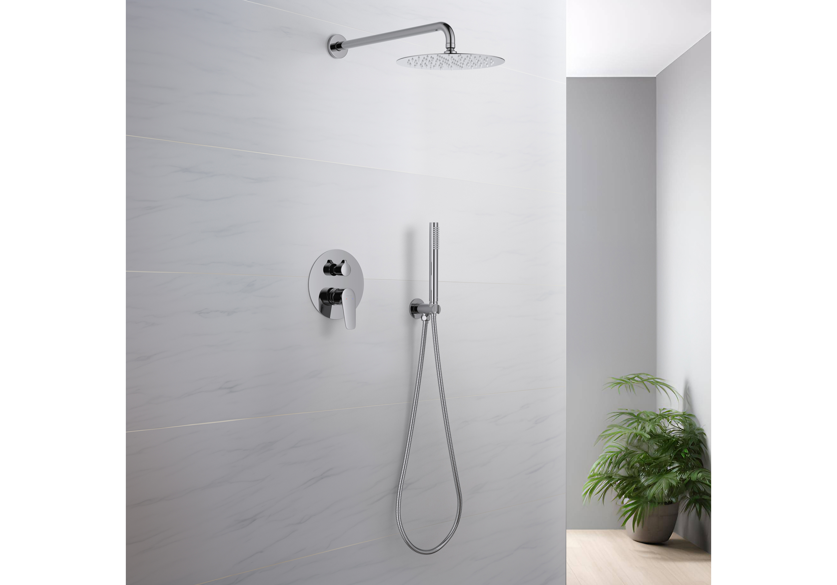 смеситель из латуни на 2 потребителя, картридж citec 35 мм, испания, декоративная пластина 3мм из нерж., кронштейн для верхнего душа 400мм из нерж., верхний душ 250х2мм из нерж., душевой шланг 1,5м из нерж., латунный держатель ручного душа, ручной душ из латуни на 1 режим струи, упакован в коробку, пленку из вспененного пвх