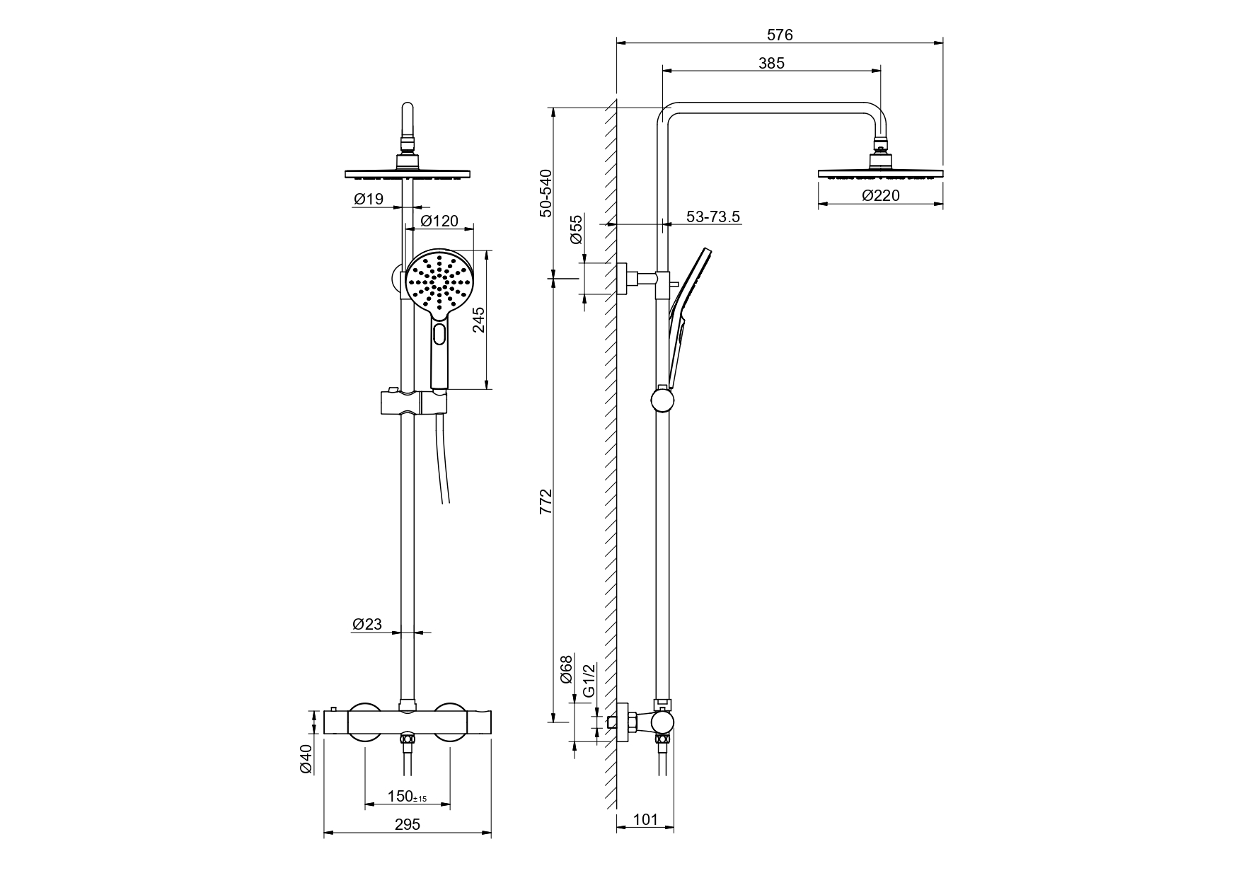 материал корпуса: латунь, картридж термостатический vernet, франция, душевая штанга из нержавейки, диаметр 23мм, верхний душ из пластика, размер диска 220мм, ручной душ из пластика, 3 режима струи, душевой шланг из нерж. 1.5м, упакован в коробку, пленку из вспененного пвх