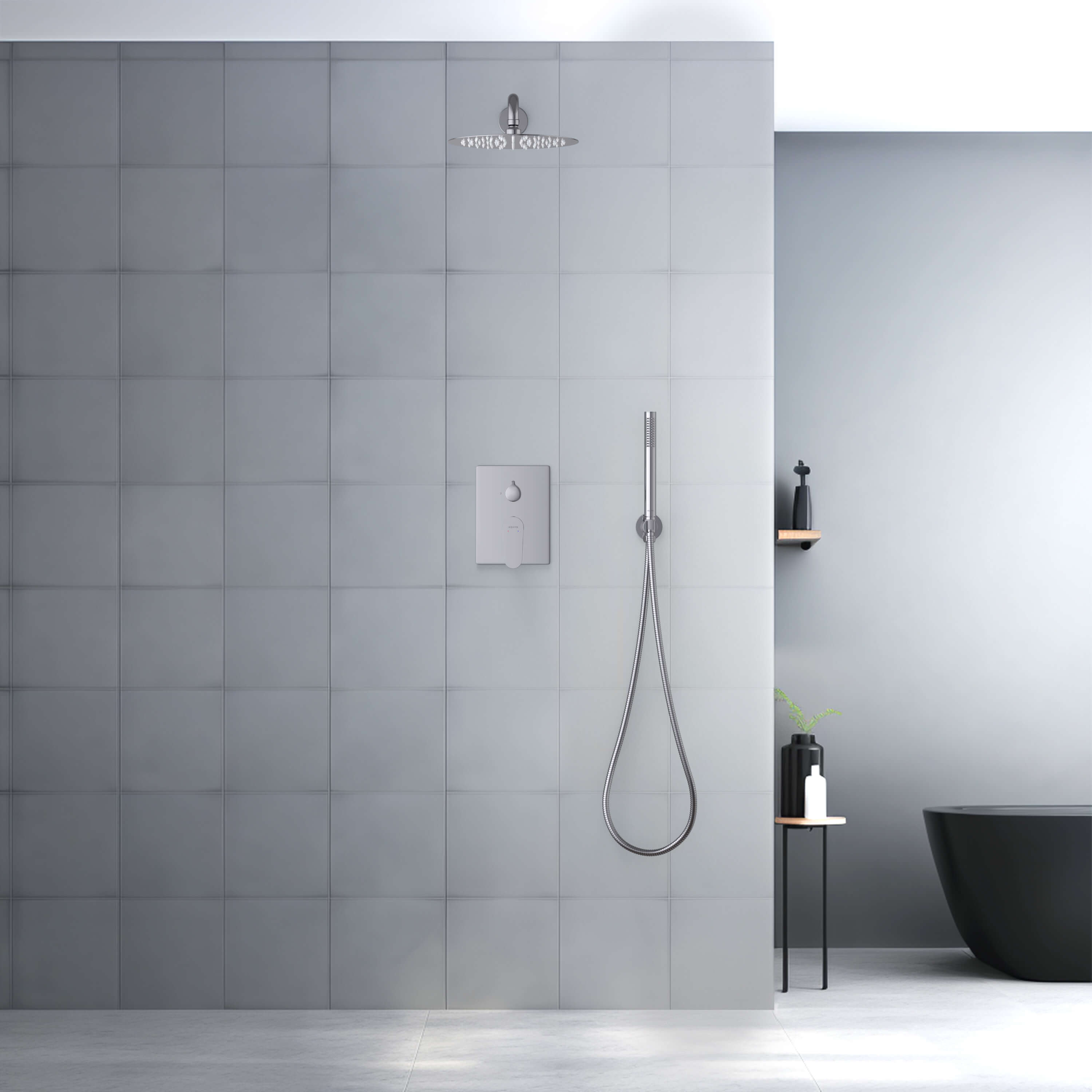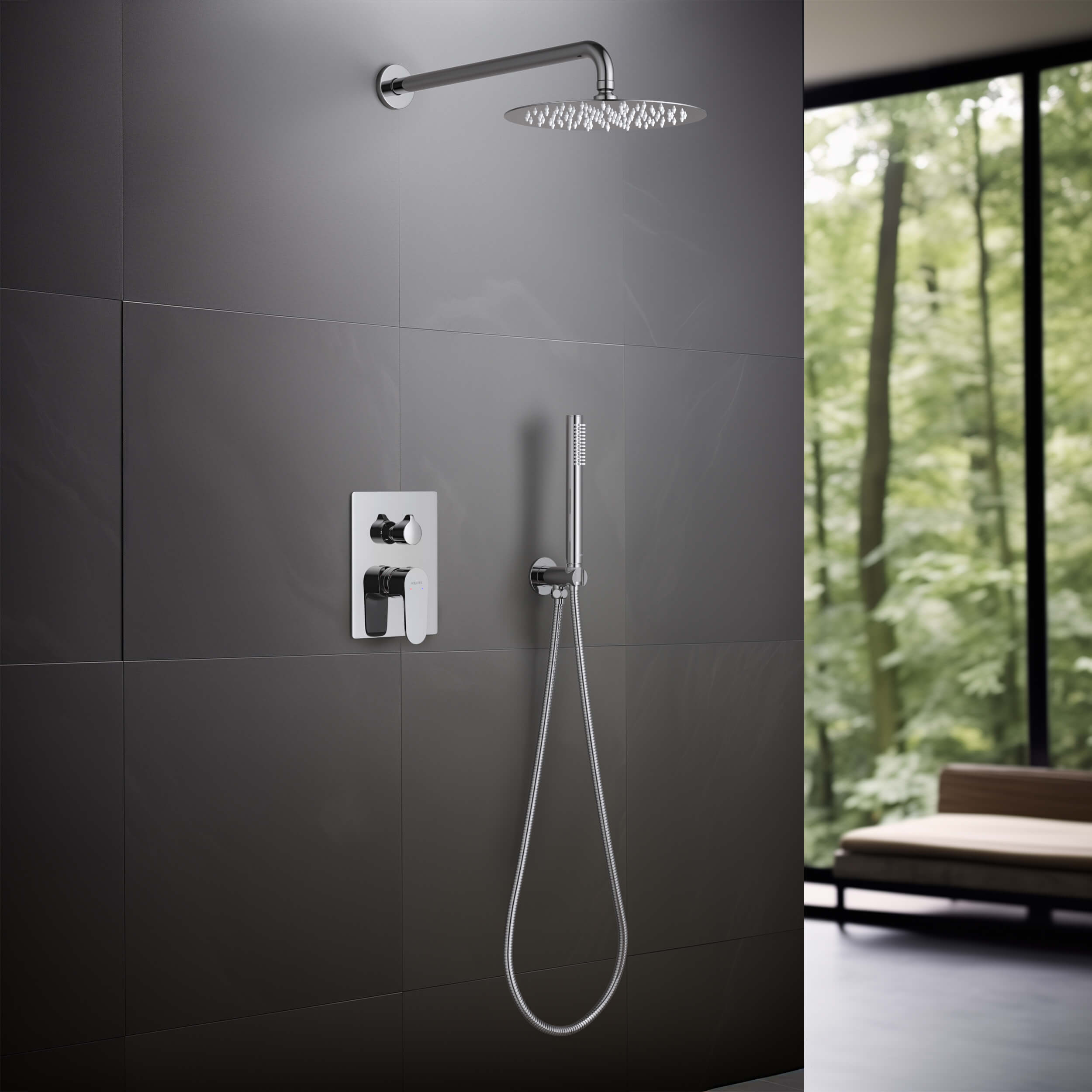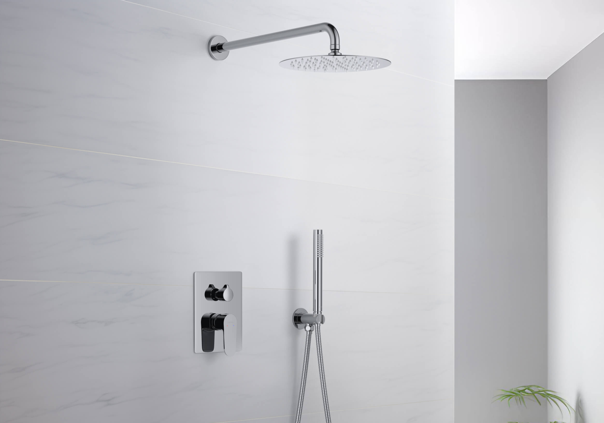 смеситель из латуни на 2 потребителя с установочной коробкой, картридж citec 35 мм, испания, декоративная пластина 3мм из нерж., дивертор - керамический картридж, кронштейн для верхнего душа 400мм из нерж., верхний душ 250х2мм из нерж., латунный держатель ручного душа, ручной душ из латуни на 1 режим струи, душевой шланг 1,5м из нерж., упакован в коробку, пленку из вспененного пвх