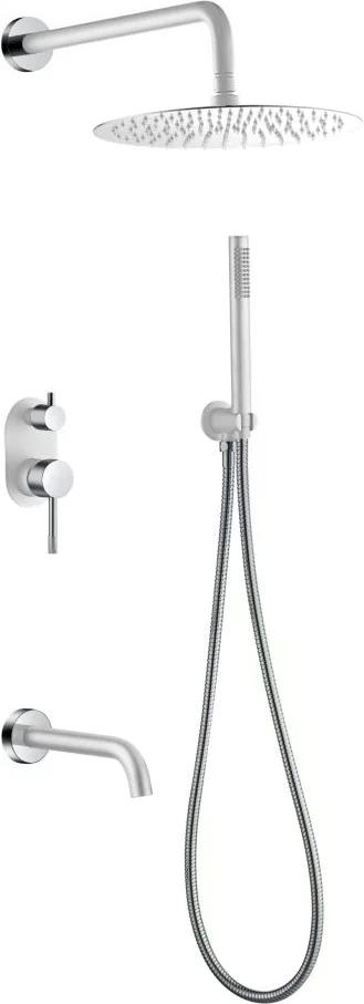 Состав поставки: смеситель, верхний душ, ручная лейка, душевой шланг, держатель, излив
