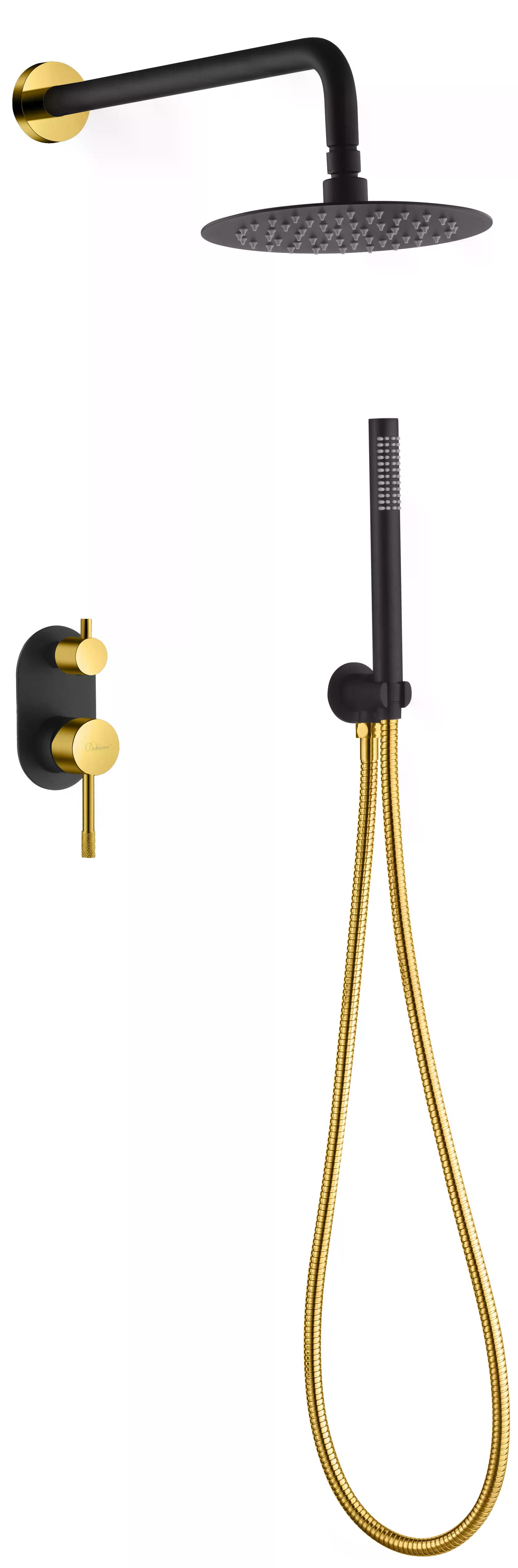 Состав поставки: смеситель, верхний душ, ручная лейка, душевой шланг, держатель