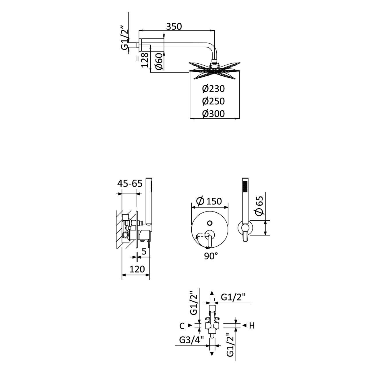 Душевая система с дивиатором для верхнего и ручного душа, верхний душ 30 см из потолка, исполнение Morning Mist