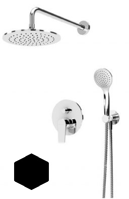 Душевая система с переключателем для верхнего и ручного душа, верхний душ из стены, диаметр 25 см, верхняя лейка металл, исполнение Чёрный матовый