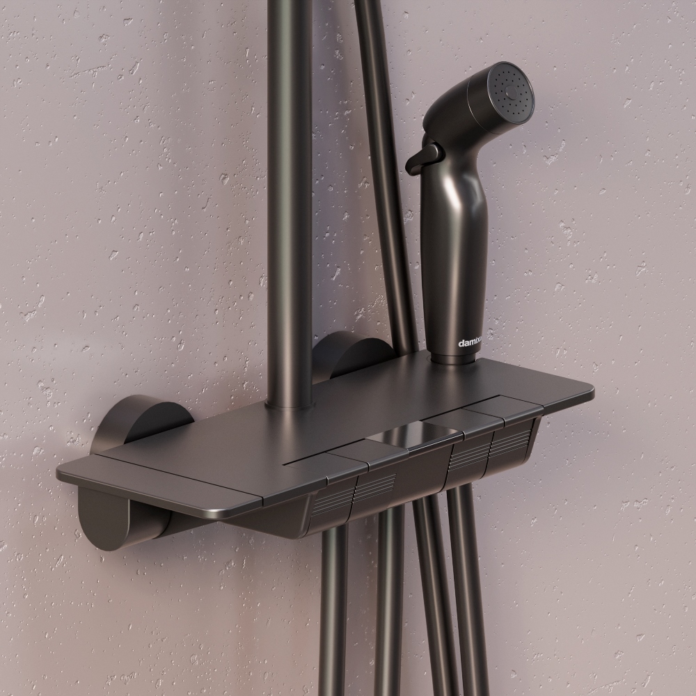 Душевая система Damixa Gala с ванно-душевым ТМС смесителем-полкой и гиг.душем, чёрный (953770300)