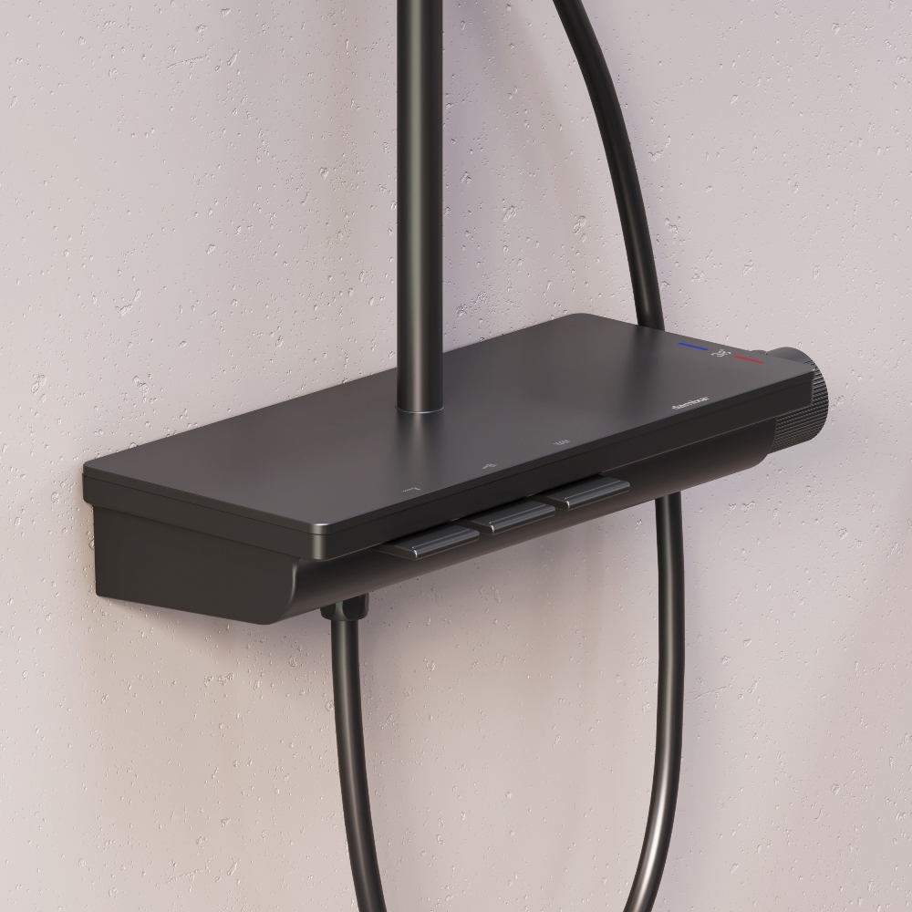 Специальное PVD-покрытие гарантирует чрезвычайную прочность душевой системы. Матово-черная поверхность не выцветает с годами и устойчива к механическим повреждениям загрязнениям и отпечаткам пальцев.