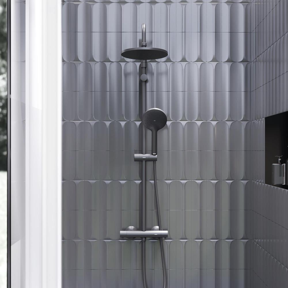 Инновационное PVD-покрытие гарантирует чрезвычайную прочность душевой системы. Матово-черная поверхность не выцветает с годами и устойчива к механическим повреждениям загрязнениям и отпечаткам пальцев.