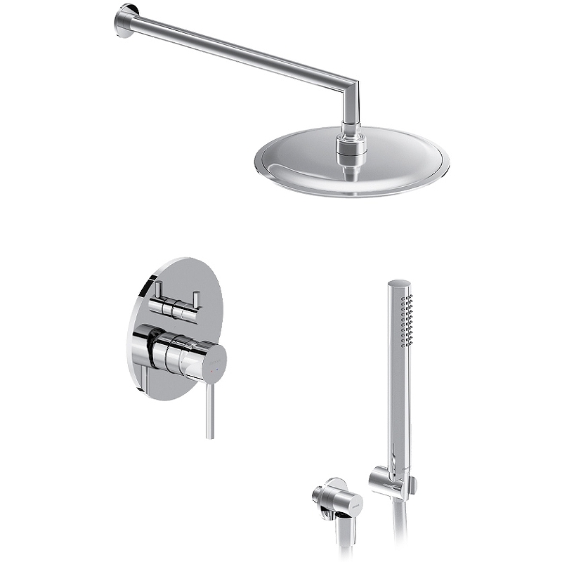 Увеличенный диаметр верхнего душа с возможностью регулировки угла наклона и ручная лейка в трендовой форме стика подарят вам полный спектр ощущений — помогут взбодриться утром и расслабится вечером. Переключайте потоки воды между ручной и тропической лейками плавным поворотом дивертора.