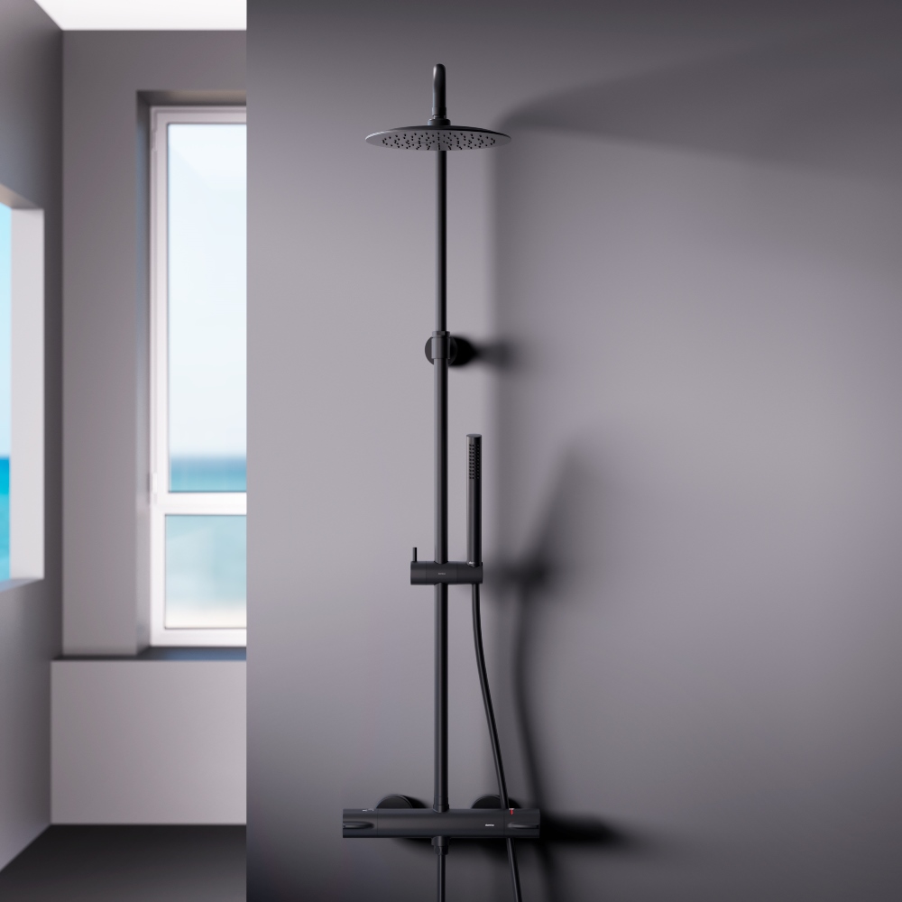 Душевые системы из коллекции Scandinavian Pure – воплощение минималистичного датского дизайна и солидного скандинавского качества. Элегантные обтекаемые формы и матовое черное покрытие станут настоящим украшением современной ванной комнаты.