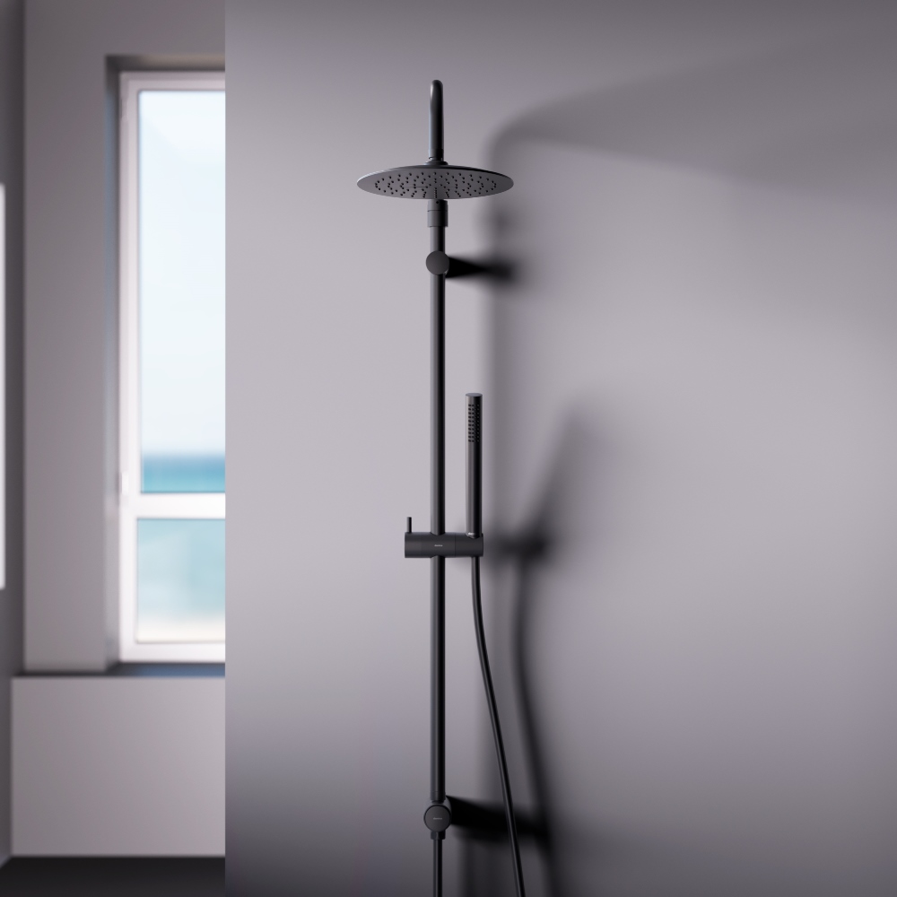 Душевые системы из коллекции Scandinavian Pure – воплощение минималистичного датского дизайна и солидного скандинавского качества. Элегантные обтекаемые формы и матовое черное покрытие станут настоящим украшением современной ванной комнаты.