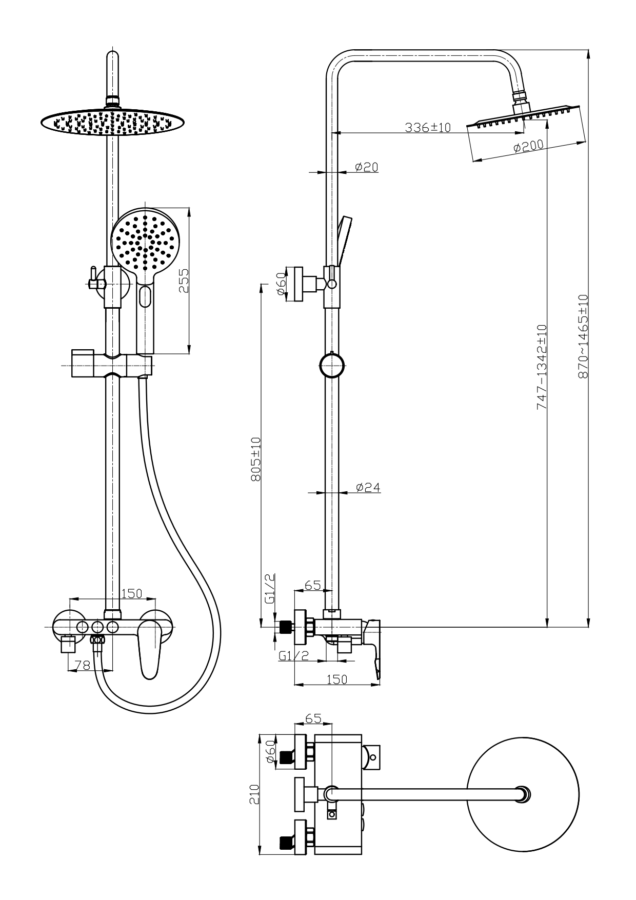 Размер верхнего душа, мм: 200