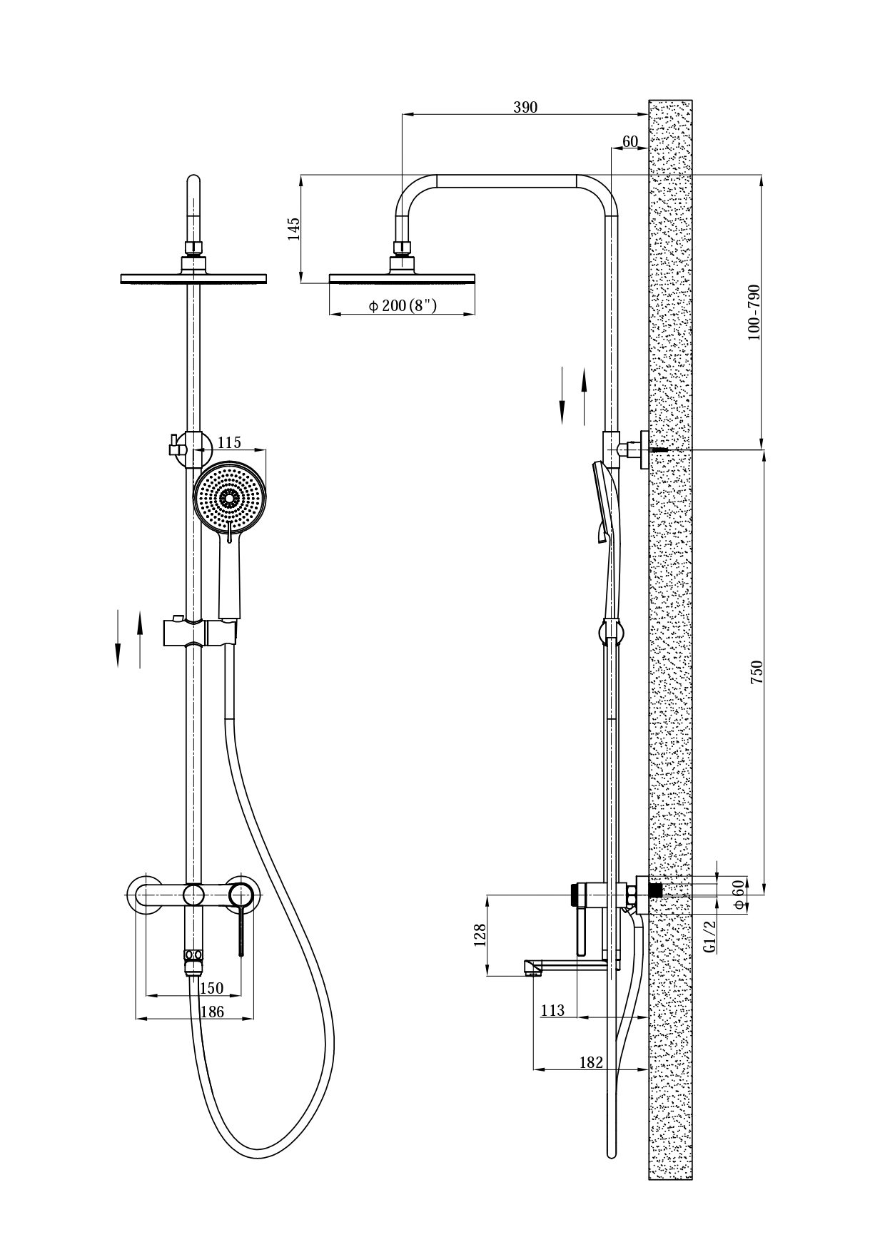 Вынос верхнего душа, мм: 390