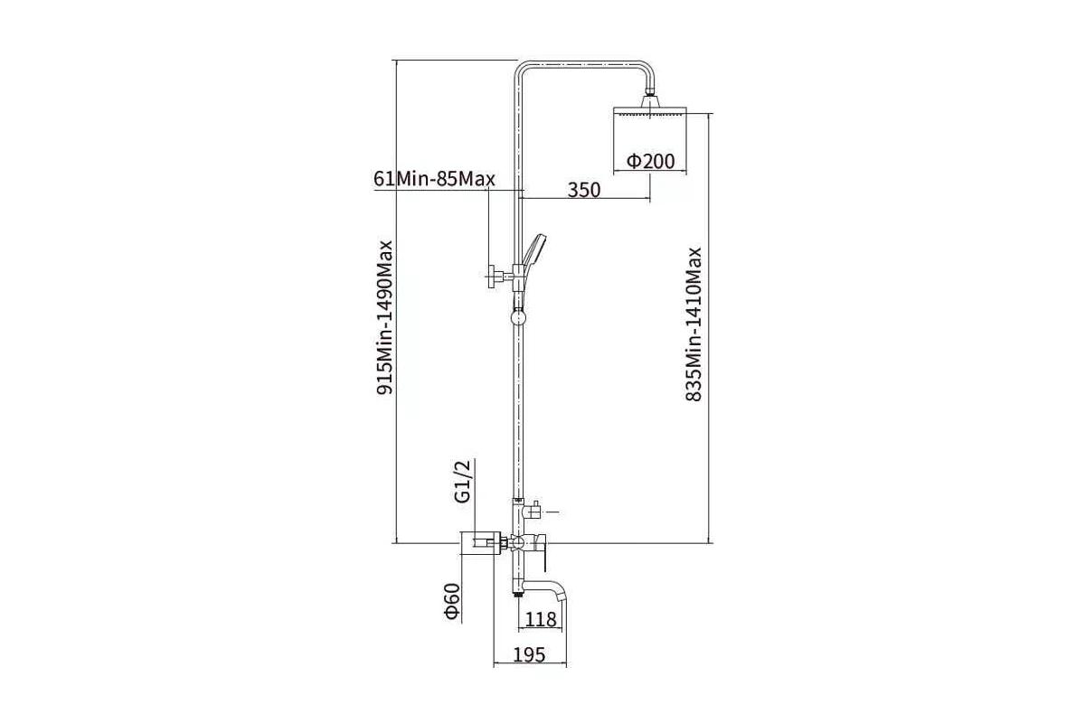 штанга: сталь SUS304, H=835-1410 мм, сатин