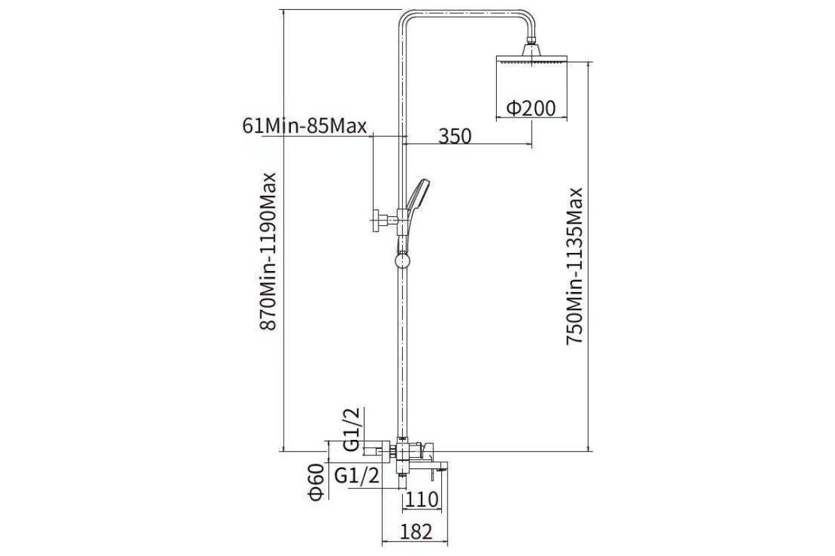 штанга: сталь SUS201, H=750-1135 мм, чёрная