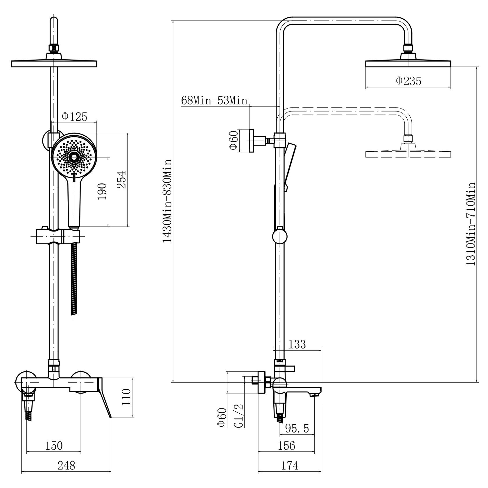 штанга: сталь SUS201, H=830-1430 мм, чёрный