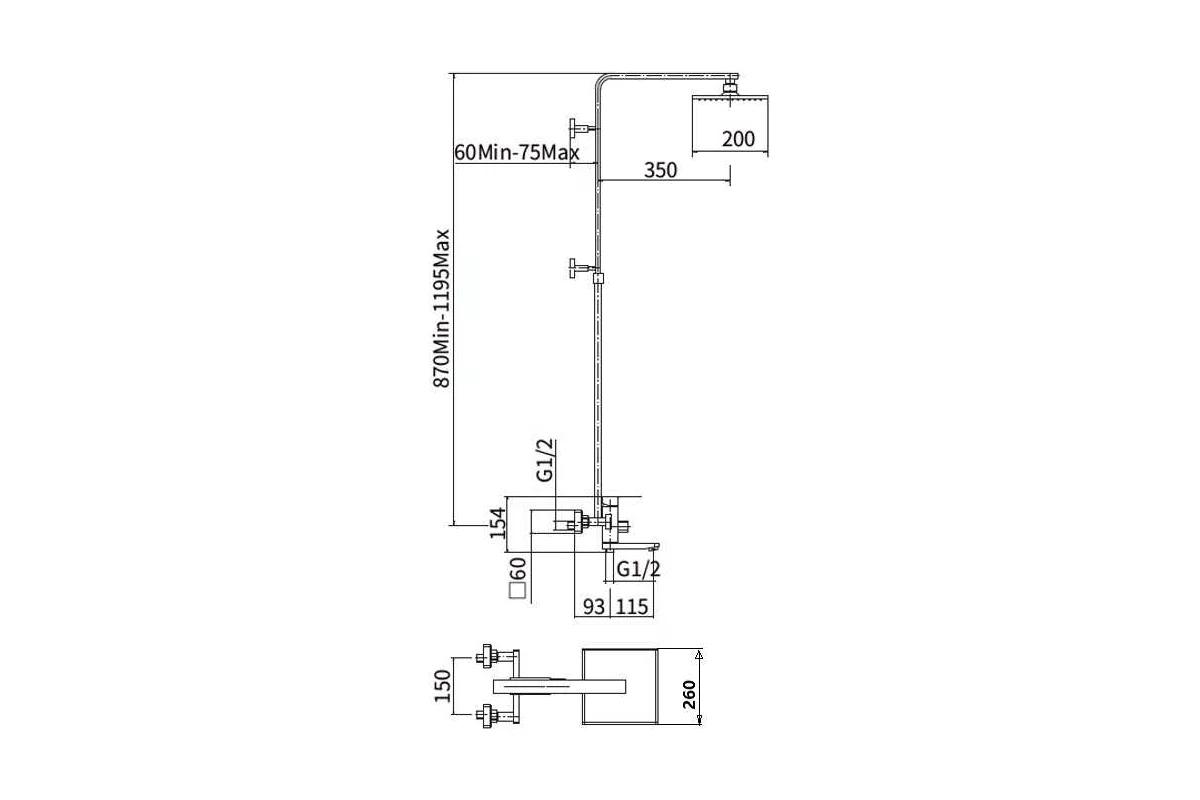 штанга: сталь SUS304, H=870-1195 мм, чёрный