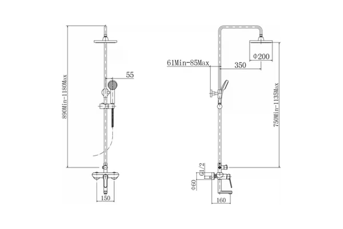 штанга: сталь SUS201, H=750-1135 мм