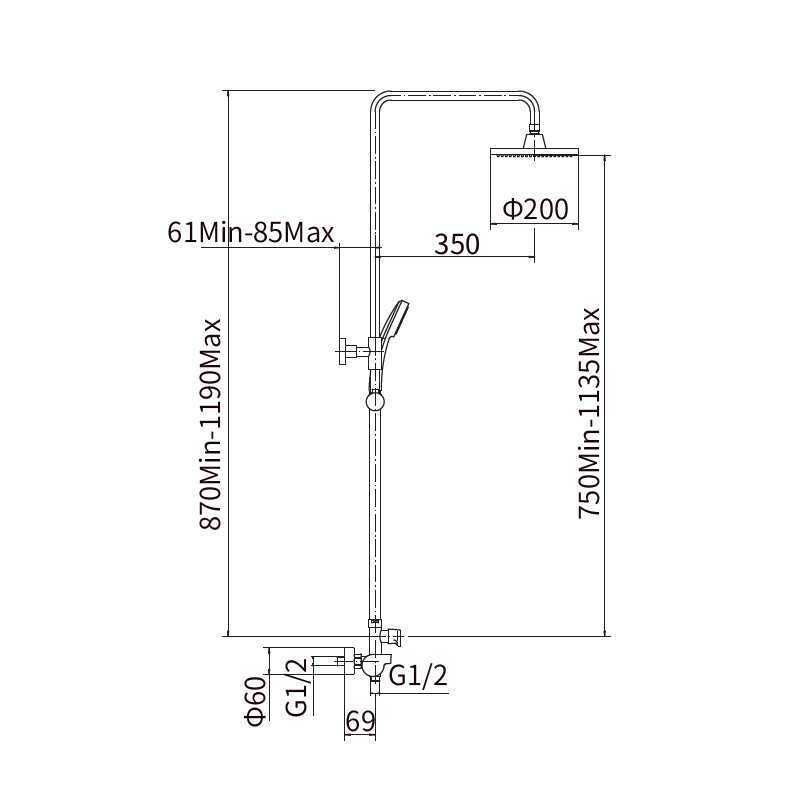 штанга: сталь SUS201, хром, H=750-1135 мм