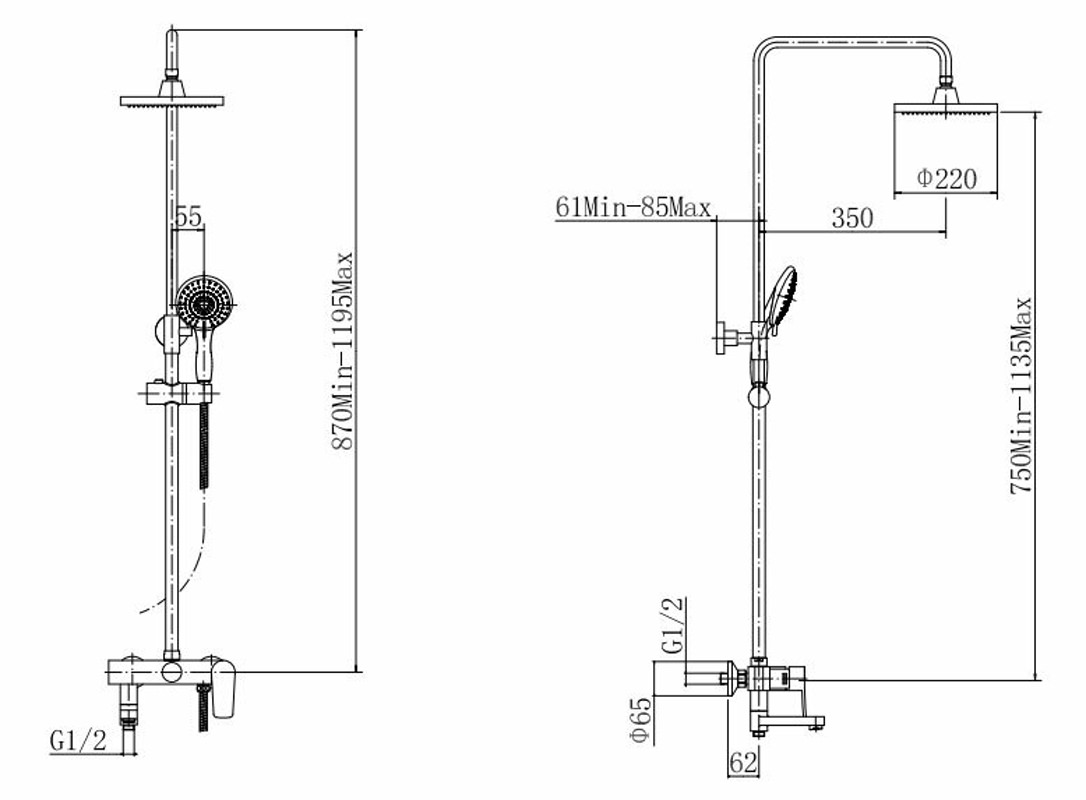 штанга: сталь SUS201, хром, H=750-1135 мм, чёрный