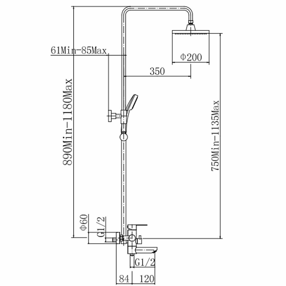 штанга: сталь SUS304, сатин, H=750-1135 мм