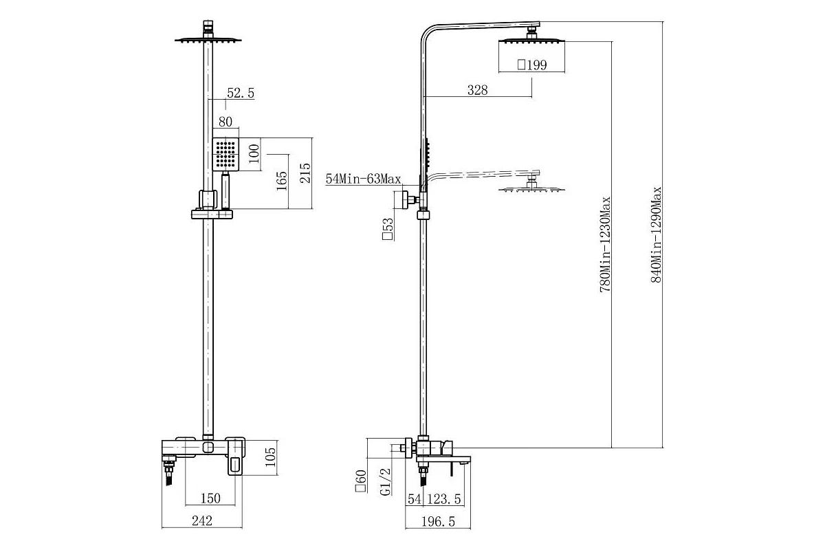 штанга: сталь SUS304, сатин, H=780-1230 мм