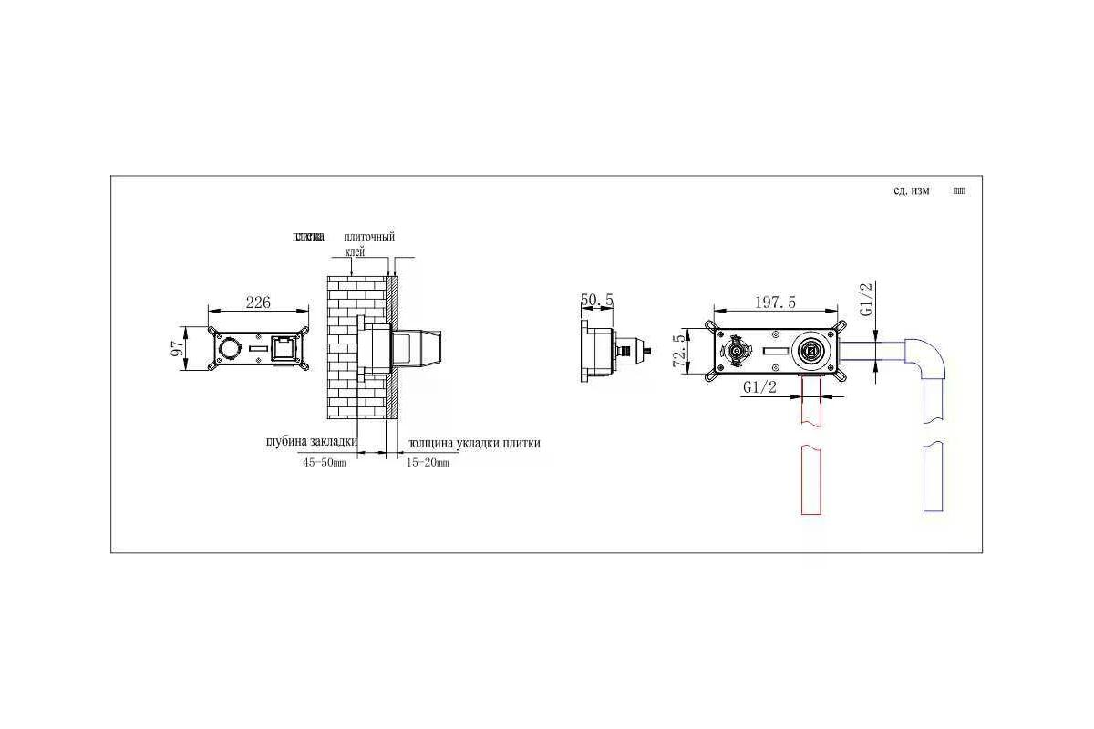 смеситель встраиваемый: латунь, картридж D=35 мм, золото