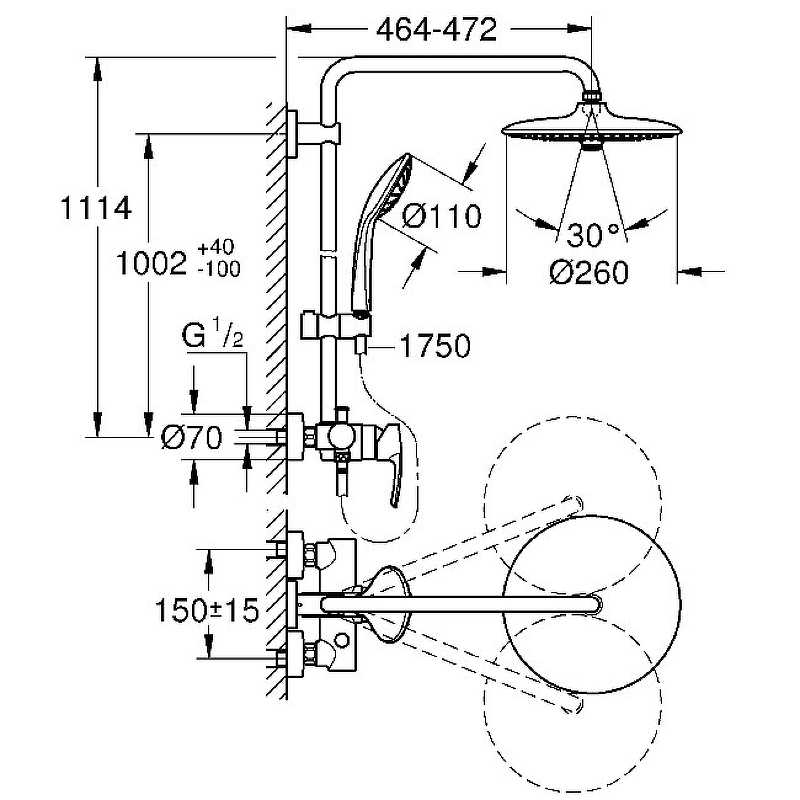 - Технология Grohe DreamSpray обеспечивает равномерное распределение потока воды через все душевые форсунки